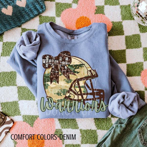 Warriors Camo Football Helmet with Bow (csg) DTF transferr