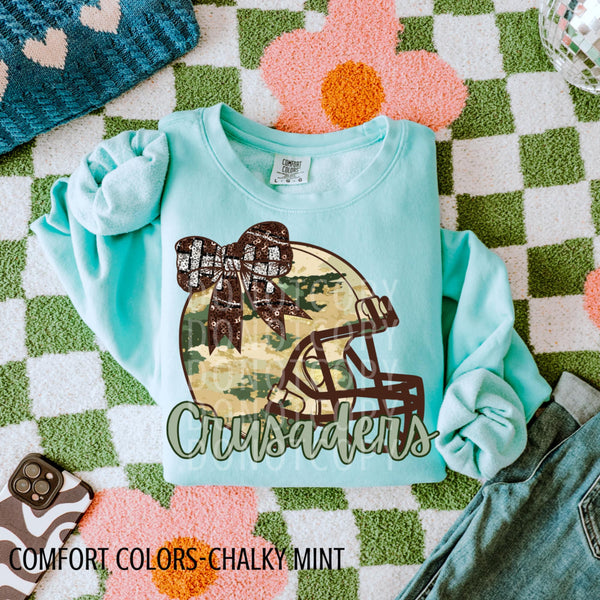 Crusaders Camo Football Helmet with Bow (csg) DTF transferr