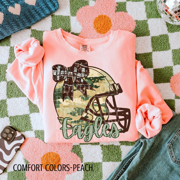 Eagles Camo Football Helmet with Bow (csg) DTF transferr