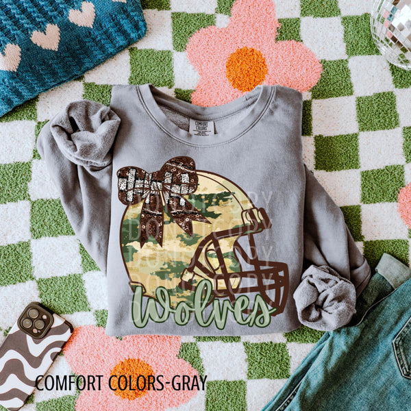 Wolves Camo Football Helmet with Bow (csg) DTF transfer