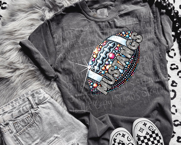 Mustangs rhinestone football (salty) DTF transfer
