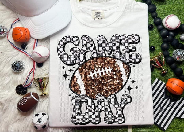 Game day football sequin checkered font (CRAFTI) 50000 DTF transfer