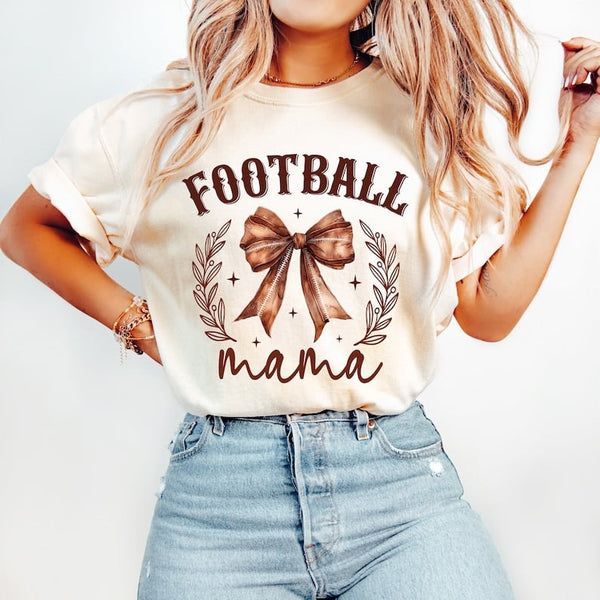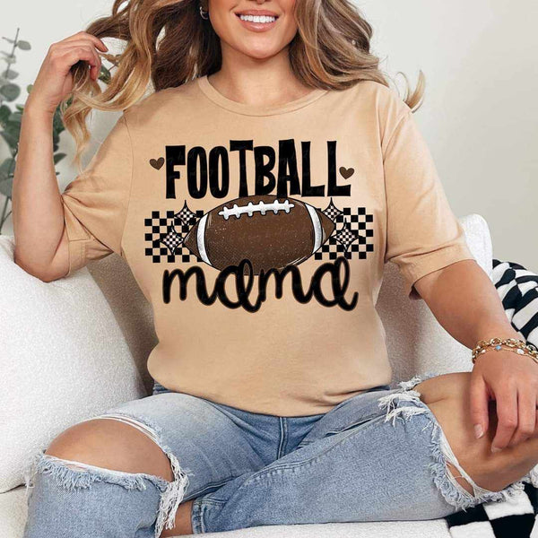 Football mama brown bow checkered background 43979 DTF TRANSFER