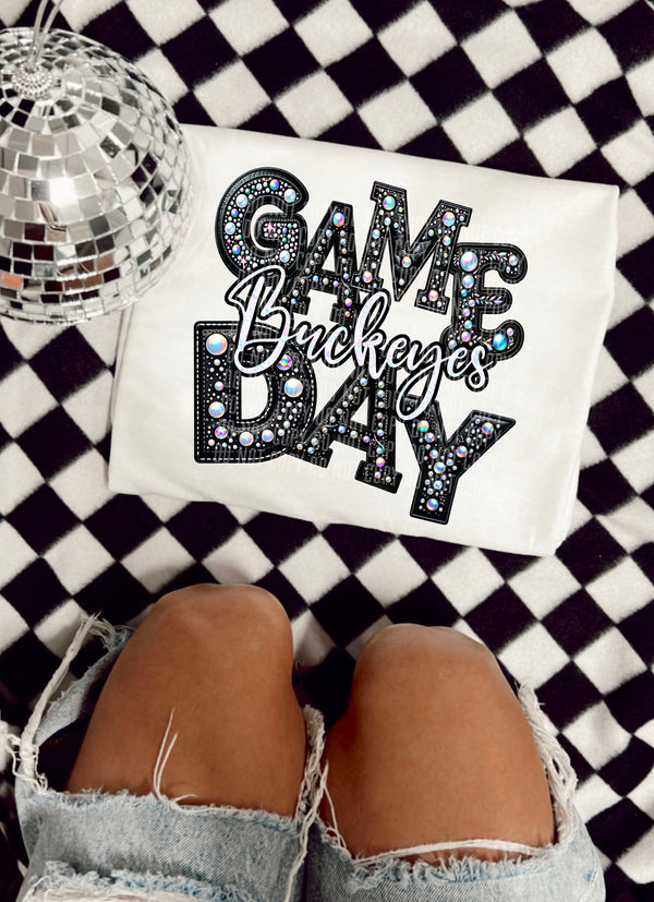 Game day black font football and rhinestones CITY 45031 DTF transfer