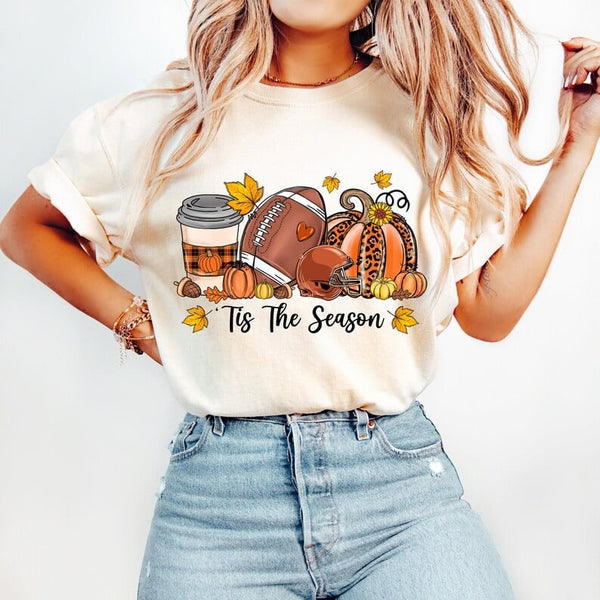 Tis the season latte, football, pumpkin 37608 DTF transfer