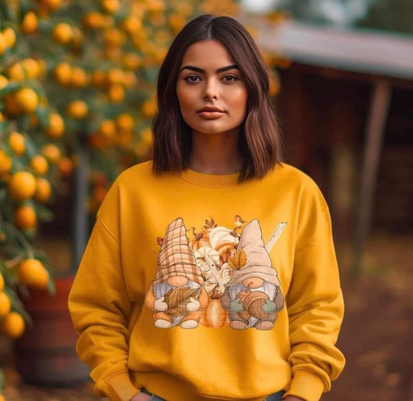 Fall gnomes with coffee cups, pumpkins, mushrooms, sunflowers, Fall colors 1383 DTF TRANSFER