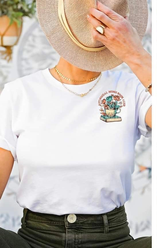 Antisocial moms book club CHOOSE SIZE cup with flowers and book DTF TRANSFER