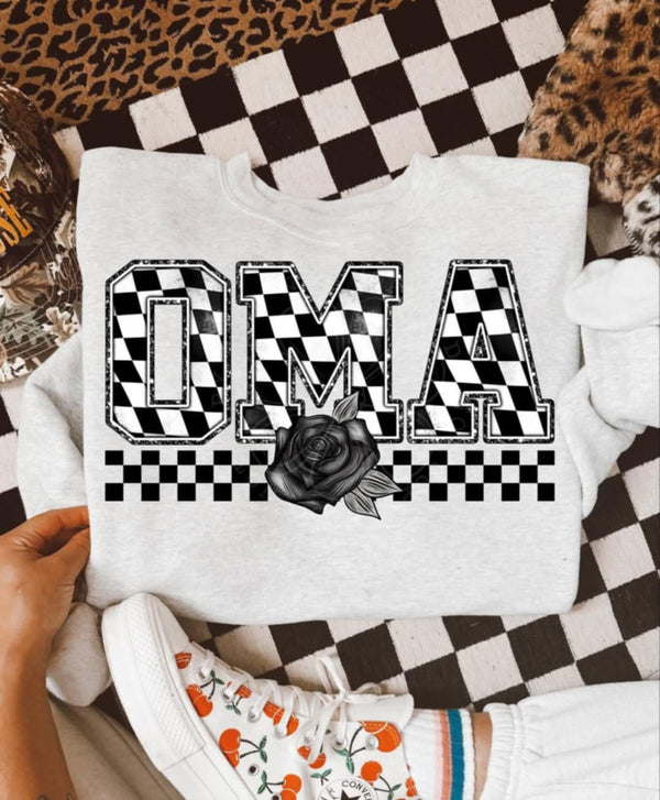 Oma checkered with black rose (Unhinged) 99334 DTF transfer