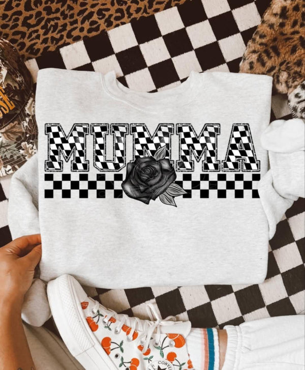 Mumma checkered with black rose (Unhinged) 99338 DTF transfer
