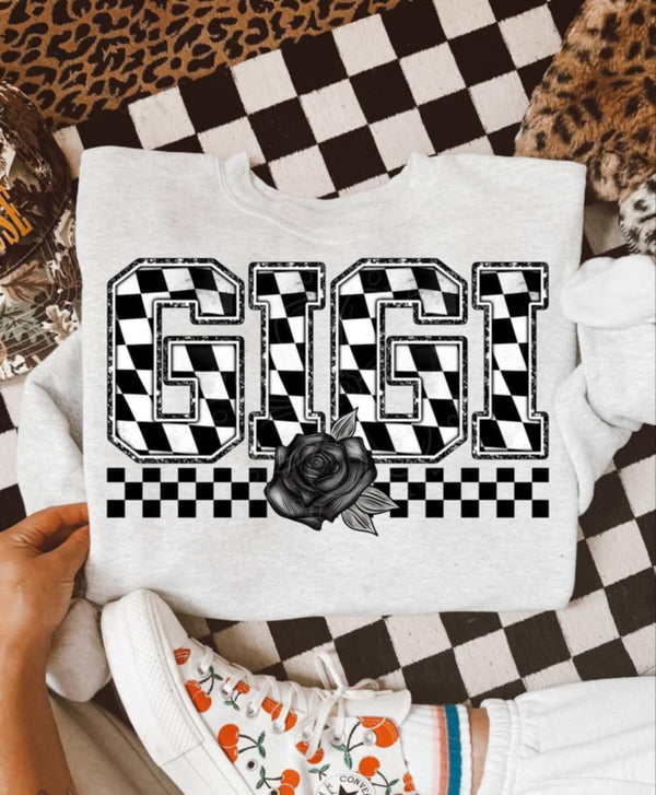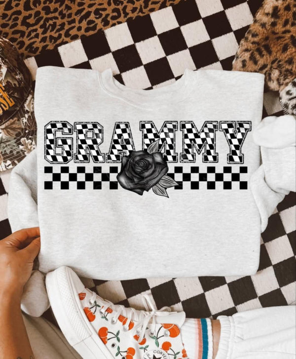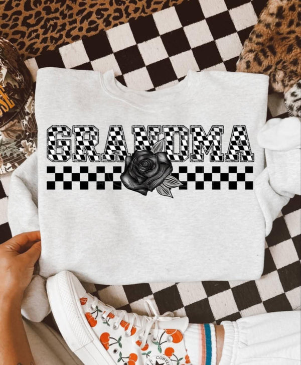 Grammy checkered with black rose (Unhinged) 99343 DTF transfer