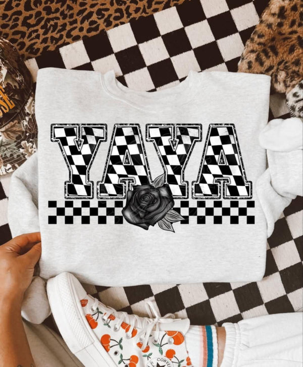 Yaya checkered with black rose (Unhinged) 99337 DTF transfer