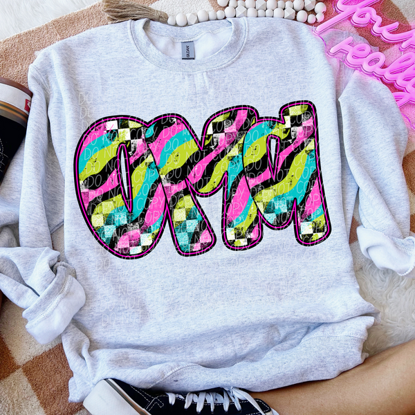 Oma Neon Checker Font (CITY) DTF transfer