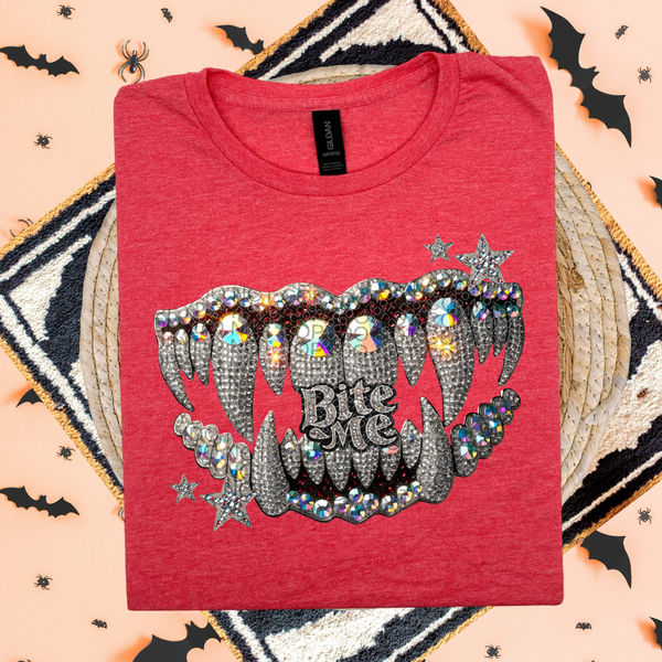 Sequin bite me vampire mouth HW DTF transfer