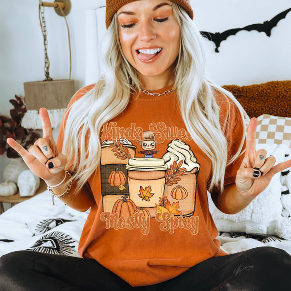 Kinda sweet mostly spicey lattes with scarecrow 1708 DTF TRANSFER