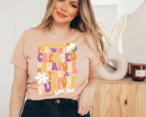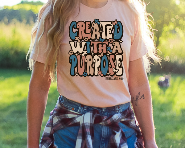 Created With A Purpose (teal and earth tones, 70's vibe lettering) 1304 DTF TRANSFER