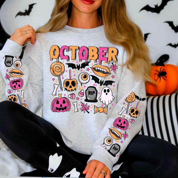 October orange and pink halloween items FRONT ONLY (CSC) 44879 DTF transfer