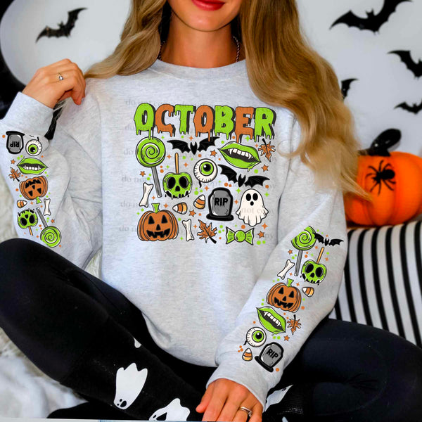 October orange and green halloween items FRONT ONLY (CSC) 44878 DTF transfer