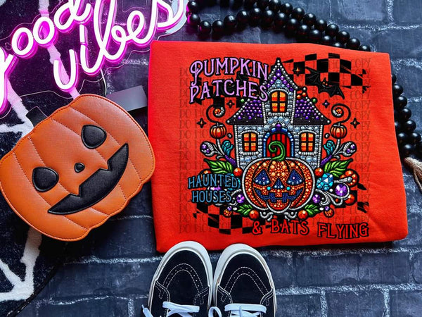 Pumpkin patches & bats flying haunted house CCDD 45275 DTF transfers