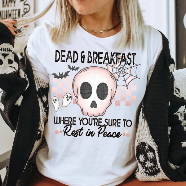 Dead & breakfast where you're sure to rest in peace skull DTF transfer