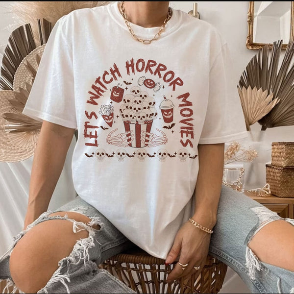 Let's watch horror movies coffee candy popcorn fries juice 68462 DTF transfer