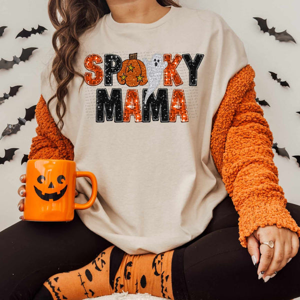 Spooky mama orange and black with pumpkin and ghost (CITY) 37483 DTF transfer