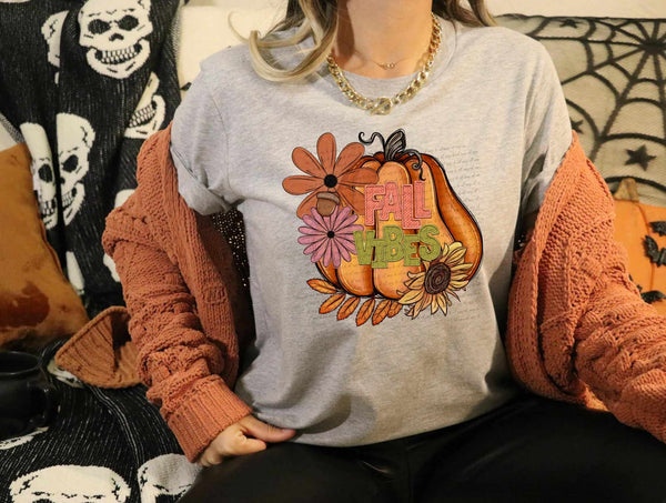 Fall vibes pink green font with gourd (CITY) 37476 DTF transfer