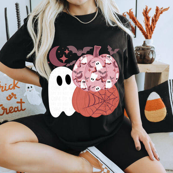 Cozy ghost stacked pumpkins (woodlief) DTF transfer
