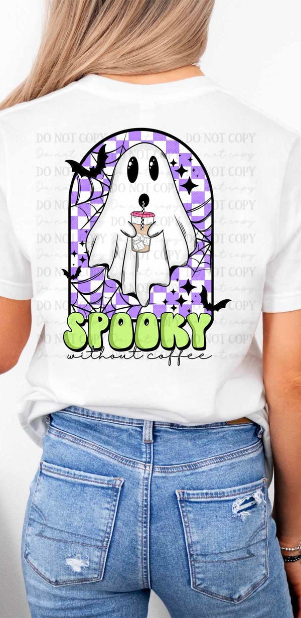 Spooky without coffee ghost purple checkered background (CITY) 36296 DTF transfer