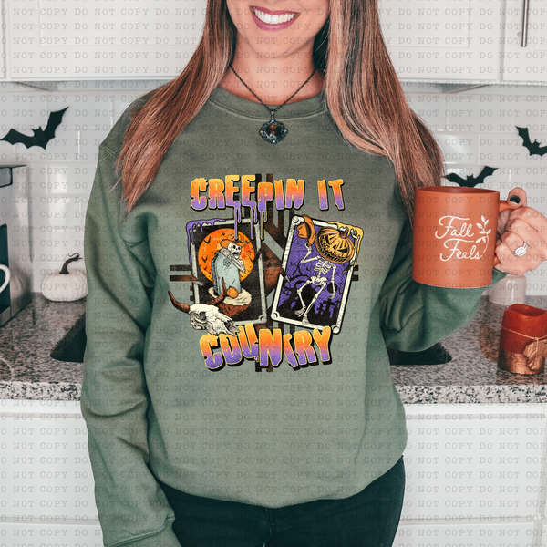 Creepin It Country (skeleton, bull skull, cards) 3445 DTF TRANSFER