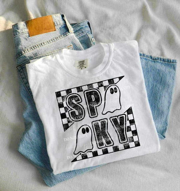 Spooky BLACK with ghosts and checkered print 9931 DTF TRANSFER