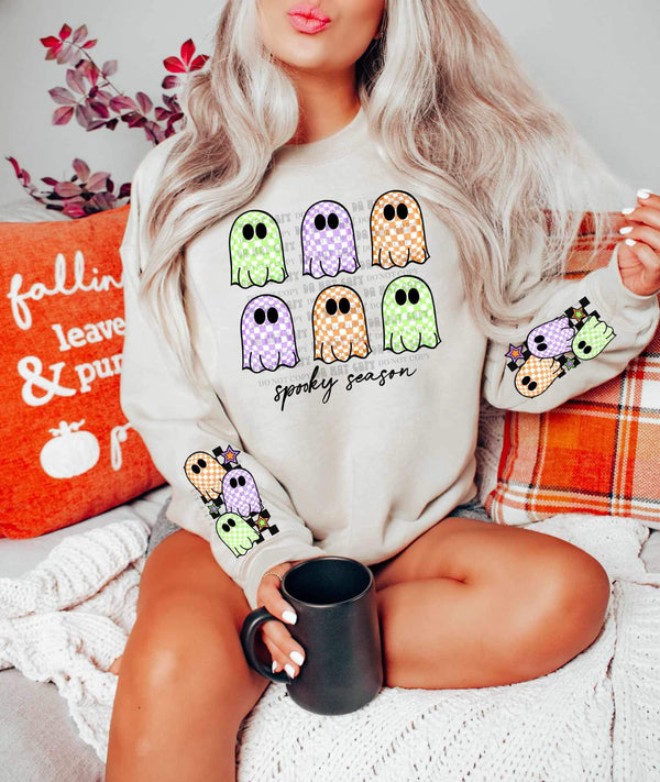 Spooky season colorful checkered ghosts SLEEVE 9892 DTF TRANSFER