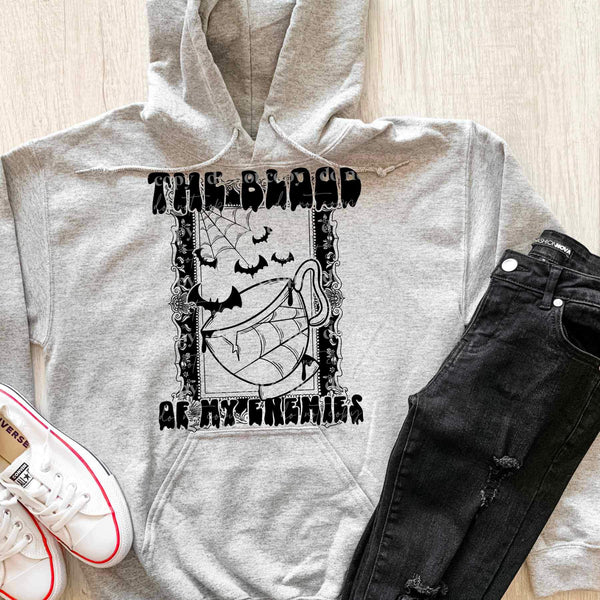 The blood of my enemies BLACK (mug with spider web, bats, and frame) 9568 DTF TRANSFER