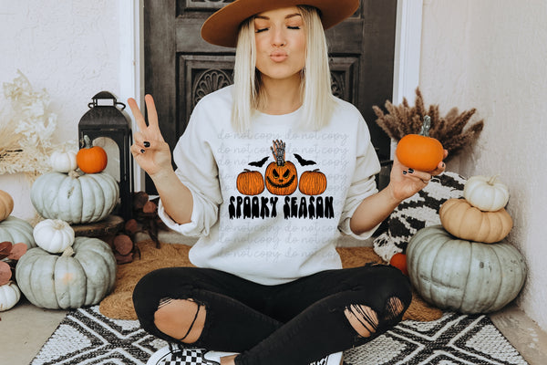 Spooky season (3 pumpkins and skellie hand) DTF TRANSFER