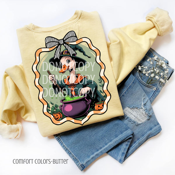 Witch Goose in Frame with striped bow CSG DTF transfer