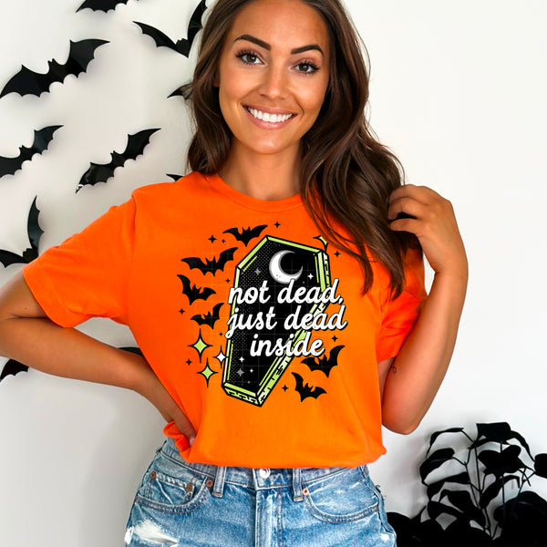 Just Dead Inside Coffin Bats black accents CSC DTF transfer