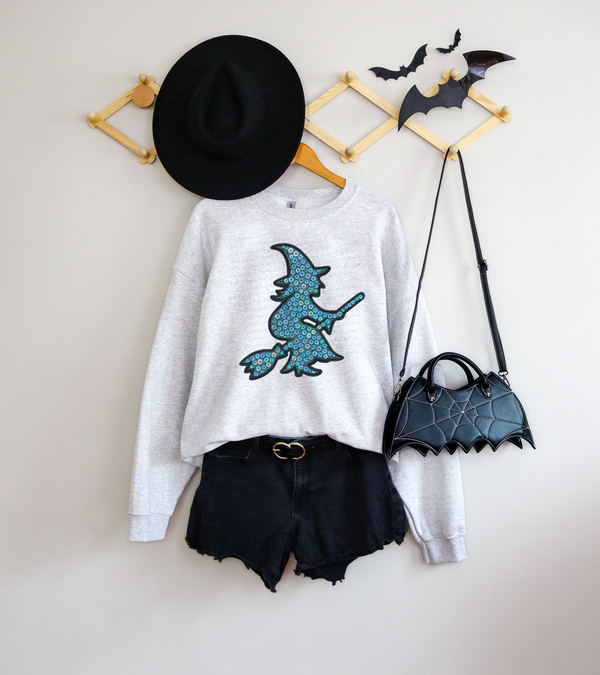 Witch Broomstick Blue Sequin 111375 DTF transfer
