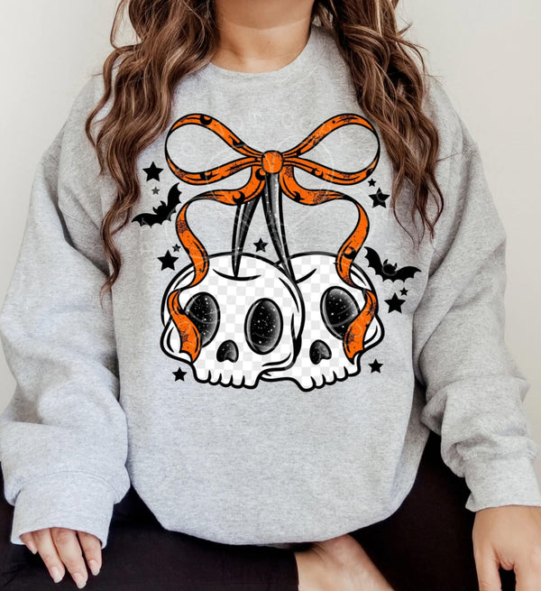 Skull Cherries ORANGE bow (lyttle) DTF transfer