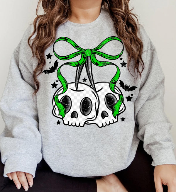 Skull Cherries GREEN bow (lyttle) DTF transfer