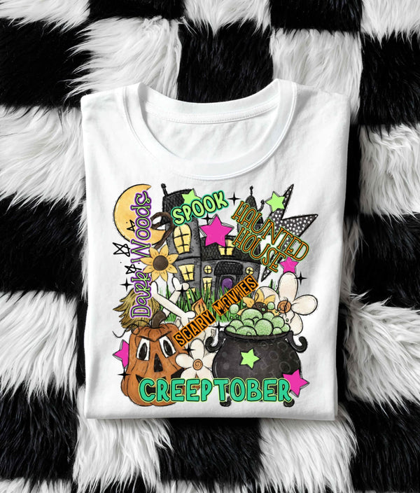 Creeptober Collage with haunted house DTF transfer