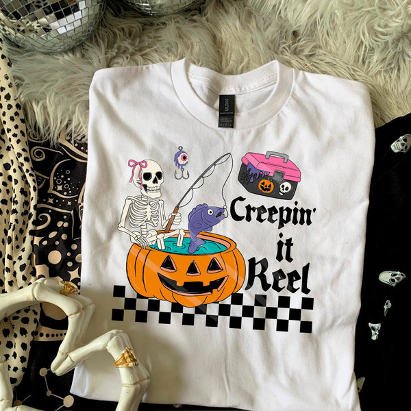 Creepin It Real Skeleton Fishing GIRL 110645 DTF transfer