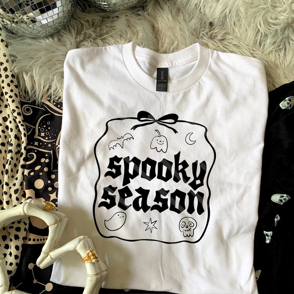 Spooky Season Frame with doodles and bow BLACK 110662 DTF transfer