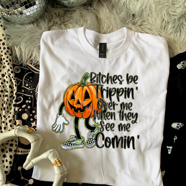 Bitches Be Trippin Pumpkin with checker shoes 110587 DTF transfer