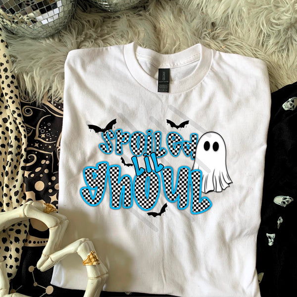 Spoiled lil Ghoul black and blue checker 110690 DTF transfer