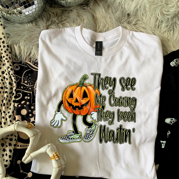 They See me comin, they hating Pumpkin with checker shoes 110585 DTF transfer