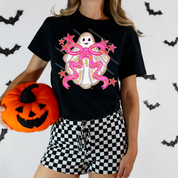 Ghost with sparkly pink bow 111002 DTF transfer
