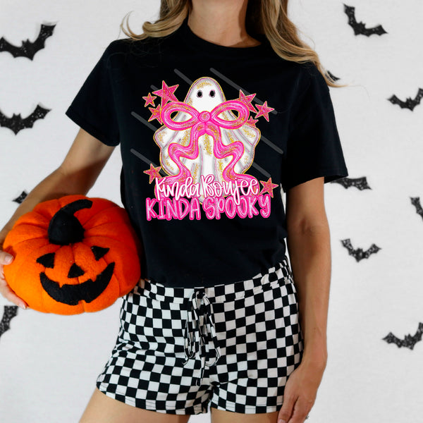 Kinda Boujee Kinda Spooky Ghost with sparkly pink bow 111001 DTF transfer