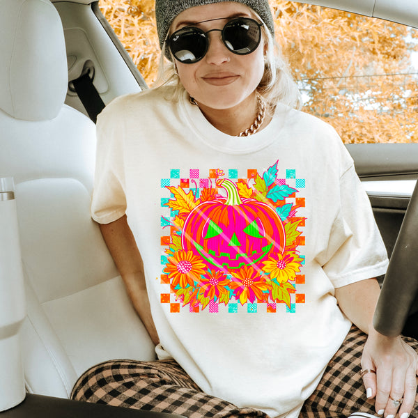 Orange Pumpkin and Neon Floral and Checker 110853 DTF transfer