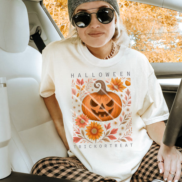 Halloween Trick Or Treat Pumpkin Florals 110845 DTF transfer