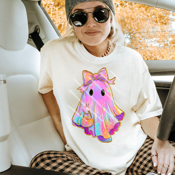 Iridescent and Gold Ghost with Bow 110860 DTF transfer