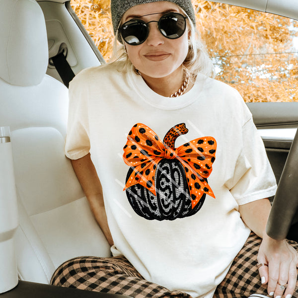 Black Lace Pumpkin with Orange Polkadot Bow 110854 DTF transfer